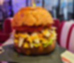 Bun con Pollo fritto, relish al mango, lattuga, pomodoro e scaglie di grana.