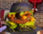 Polpo fritto in bun nero al carbone con avocado, misticanza e salsa all'arancia.
